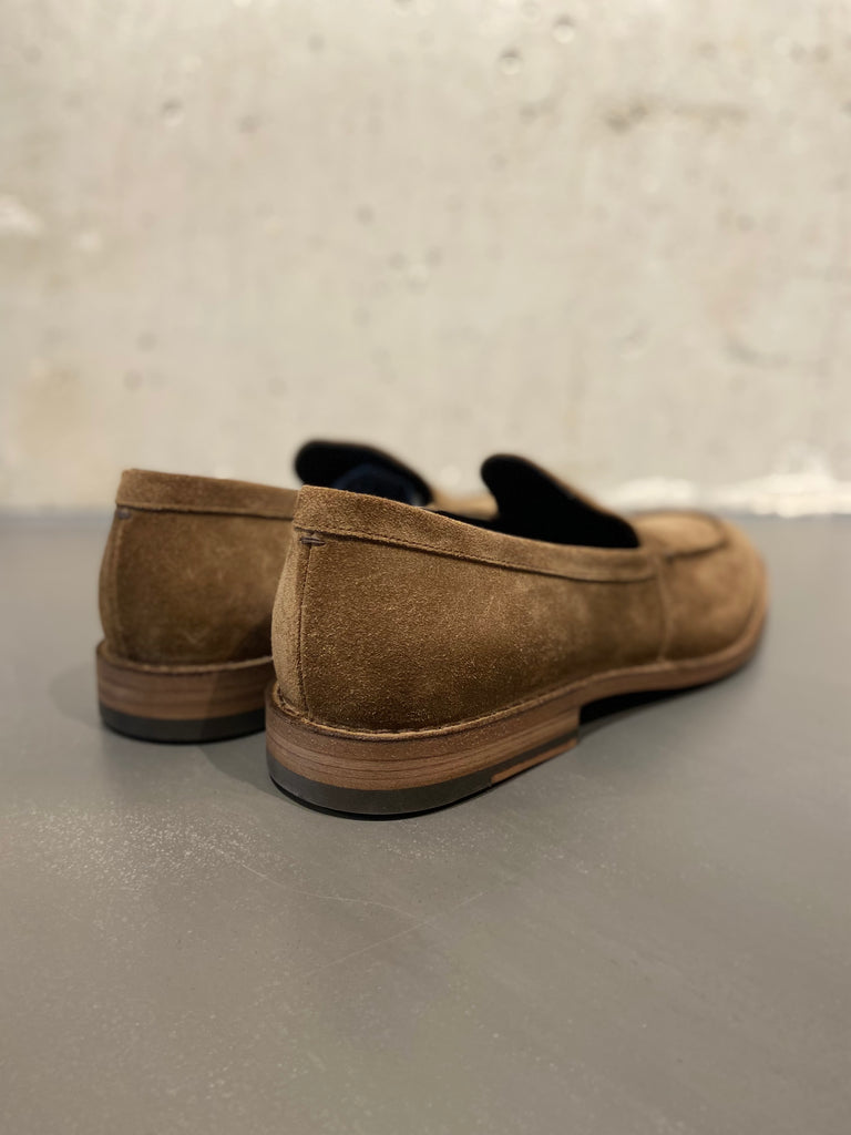 Pantanetti suede loafer with tonal accent stitching in colour taupe.