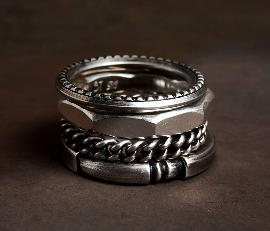 WERKSTATT:MÜNCHEN M1185 4 RING COMBINATION HAMMERED