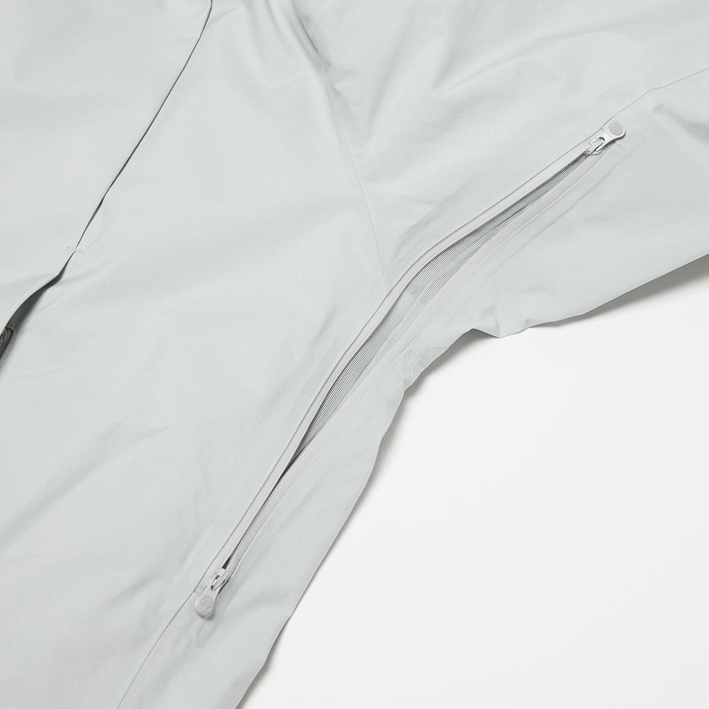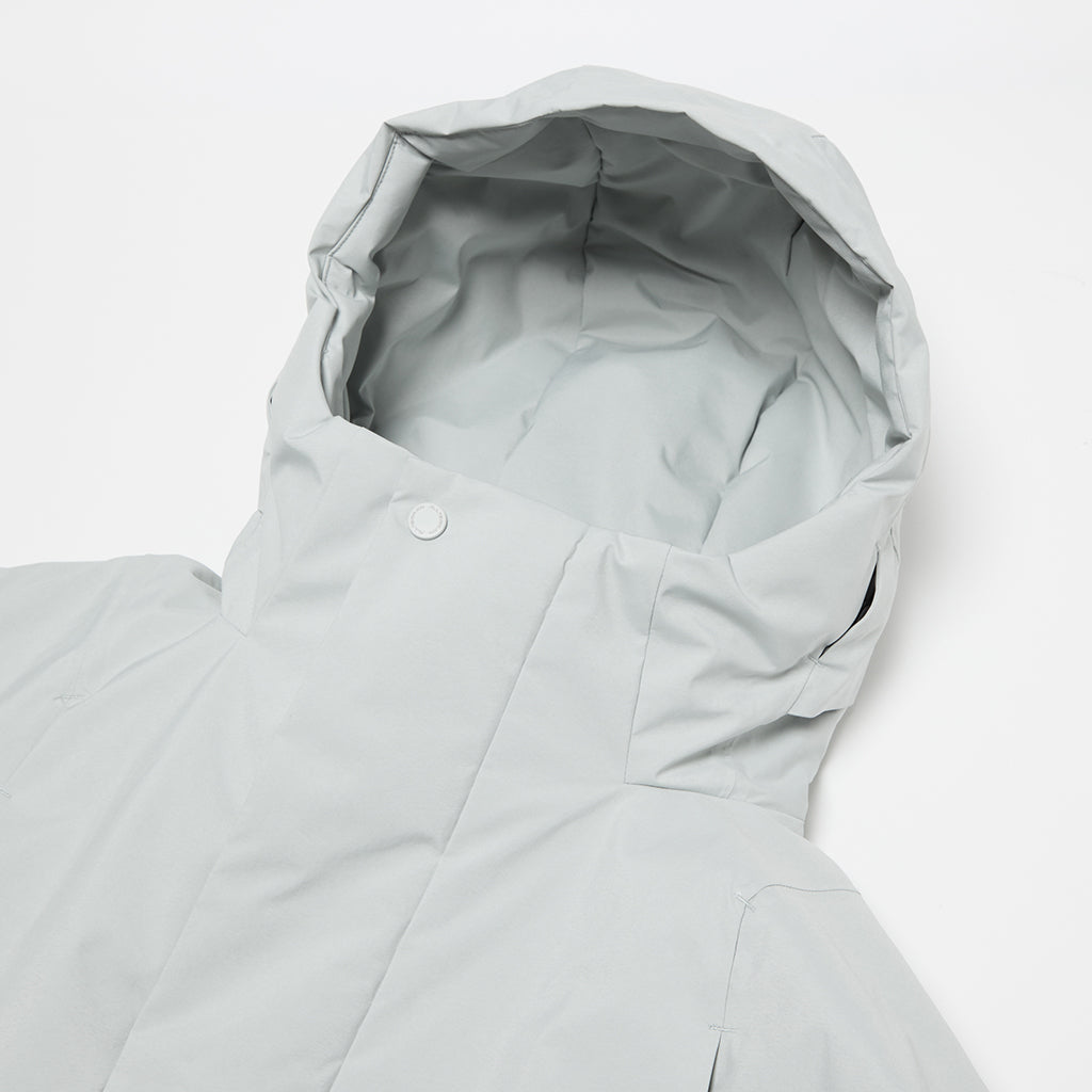 A hybrid insulated coat in a WINDSTOPPER® product by GORE-TEX LABS. A special ventilated down pack with a unique barrier structure and a ventilation system in the centre of the back encourage airflow inside the garment, expelling uncomfortable heat and moisture, allowing the coat to breath. The insulation is a hybrid blend of hollow-structured AEROCAPSULE® and SOLOTEX®, which has outstanding softness property. The high loft of the hybrid insulation improves warmth and reduces weight. The lining is DESCENTE's proprietary HEAT NAVI® which converts light into heat and actively retains warmth, providing a comfortable environment inside the garment even in cold conditions. This hybrid outerwear combines the advantages of down and functional insulation with high wind and water resistance.